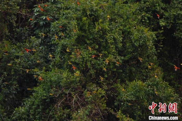 | 中新网福州2月2日电(张丽君 陈林)2日,在福建省福州市永泰嵩口镇的大樟溪畔,呈现出令人惊叹的自然美景。约20只素有“鸟中国宝”之称的中华秋沙鸭,在水面上自由嬉戏;成群的赤红三椒鸟振翅高飞,场面十分壮观;还有美丽的白胸翡翠等众多珍稀鸟类汇聚于此,共同构成了一幅生机勃勃的生态画卷。 r r飞翔中的中华秋沙鸭。陈林 摄 r 中华秋沙鸭是国家一级重点保护野生动物,白胸翡翠被列入中国《国家重点保护野生动物名录》二级保护动物,赤红三椒鸟则被列入2000年8月1日发布的《国家保护的有益的或者有重要经济、科学研究价值的陆生野生动物名录》。 r r白胸翡翠。陈林 摄 r 这些珍稀鸟类的频繁现身,是永泰嵩口镇大樟溪生态环境持续改善的有力证明。近年来,当地政府和相关部门高度重视生态保护工作,采取了一系列行之有效的措施,加强水资源保护、治理环境污染、修复生态系统,为鸟类提供了良好的栖息和繁衍环境。如今的大樟溪,水质清澈,水草丰茂,鱼虾资源丰富,已然成为众多鸟类的理想家园。 r r赤红山椒鸟群飞。陈林 摄 r 大樟溪良好的生态环境不仅吸引了鸟类,也吸引了大量游客前来观赏鸟类、亲近自然,为当地的生态旅游发展注入了新的活力。(完) r(中国新闻网) r